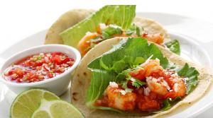 Ingredienser: 1⁄2 kg kokta räkor, 8 tortillas från märket Nagual, 2 små tärnade tomater, Salsa Valentina – en stark sås för smaksättning, 1 vitlöksklyfta, finhackad1⁄2 vitlök, finhackad, finhackad persilja för smaksättning, 1 limeJungfruolivolja, salt och peppar.