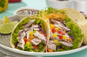 Ingredienser: 3 burkar rökt tonfisk på 140 g, 6 majstortillas från Nagual, 6 salladsblad (valfri sallad), 1,1 dl finhackad kål, 1,1 dl citronsaft, 1,1 dl olivolja, 0,8 dl sweet chili salt.