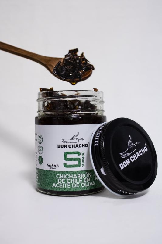 Serrano chili, made into chicharrón, with olive oil and seasoned.