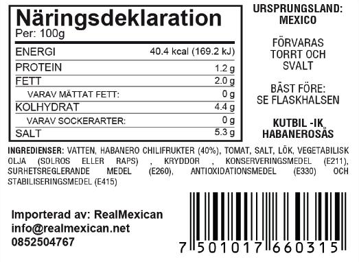 Ingredients: water, habanero chili, tomato, salt, onions, vegetable oil (sunflower or rapeseed), spices (garlic and coriander), preservative (E211), acidity regulating agent (E260),