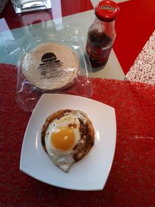 IIngredienser: 1 ägg, 1 majstortilla,ranchera sås, salt. Serveras med: fetaost, avocado, mer chilisås om behövligt.