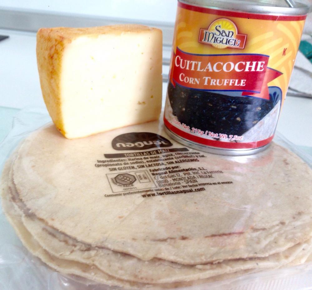 Ingredienser för 12 st quesadillas: 2 msk olivolja, 500 g huitlacoche (majs sot), ½ gul lök, tärnad, 2 vitlöksklyftor, finhackade , 1-2 serrano- eller jalapenopeppar, hackade, 2 tsk torkad epazote (citronmålla), salt och peppar efter smak, 250 g Oaxaca ost eller annan valfri, lättsmält ost, 12 st majstortillas Instruktioner: 1) Fräs den gula löken i olivolja i en djup stekpanna. När löken börjar bli genomskinlig, tillsätt vitlök och fräs i ytterligare några minuter. 2) Tillsätt sedan majssoten, citronmållan och chilin/pepparn och låt det blandas med resten av ingredienserna, i ca 5-7 minuter. Rör hela tiden om. Krydda efter smak. 3) Värm några tortillas och fyll dem sedan med den heta röran. Strö över ost. Vik dem på mitten och ta bort dem från värmen när osten är smält. Servera med grön eller röd salsa.