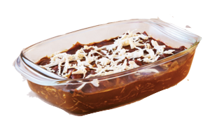 Ingredienser: 12 st tortillas (delade på mitten), 3 msk rapsolja, 4,5 dl La Costeña Mole, 1 burk La Costeña svarta bönor (400 g), 4,5 dl tillagad och strimlad kalkon. Instruktioner: 1. Stek tortillas på båda sidor i olja. 2. Lägg ett lager tortilla i en form, sedan ett lager mole, ett lager kalkon och ett lager bönor. Upprepa tre gånger. 3. Sätt in i ugnen på 180°C i 15 minuter eller tills kakan är ångande varm. 4. Servera och dekorera med strimlad kalkon.
