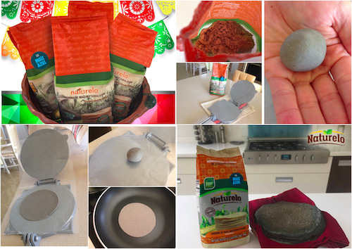 vatten, mjöl och salt och forma till masa harina, se foto för