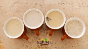 Ingredienser: 4 matskedar med majsmjöl (Naturelo), 0,6 dl piloncillo strut (mexikanskt brunt socker), 7 dl mjölk. För smaksättning tillsätt 1,2 dl valnötter eller 1,2 dl jordgubbar eller en sked vanilj,eller vad du föredrar.