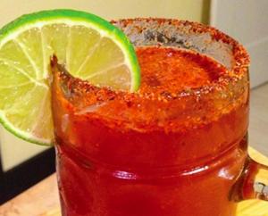 Ingredienser: 1 tsk salt, 1 tsk chillipulver, 1 tsk svartpeppar, juice ½ lime, skakningar av hot red el yucateco sås, mexikansk lageröl